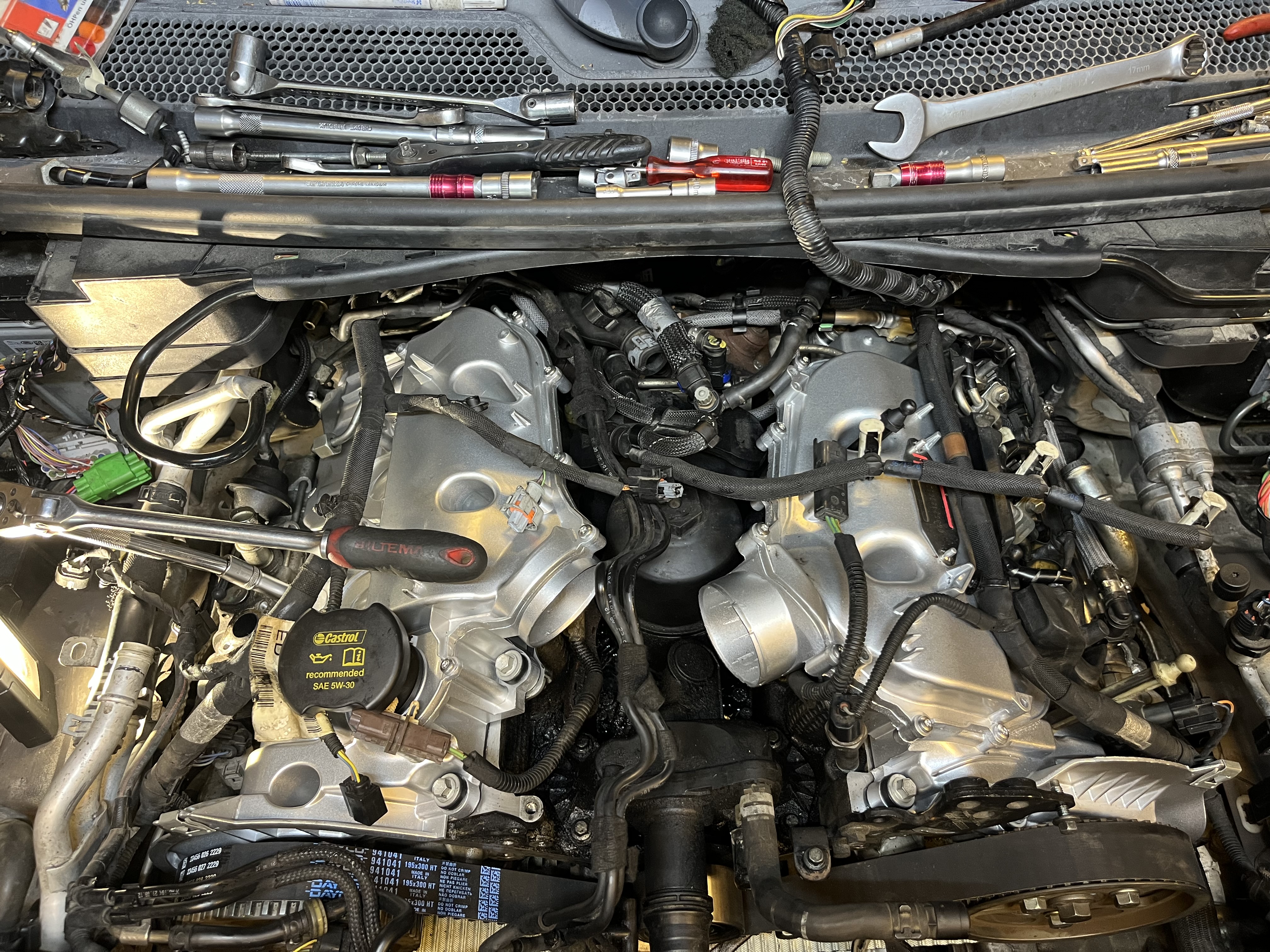 Bökigt till tusen, och man ”måste” riva bort kåpan över kamremmen, dra ut spridarna, lossa EGR- ventilen mm.