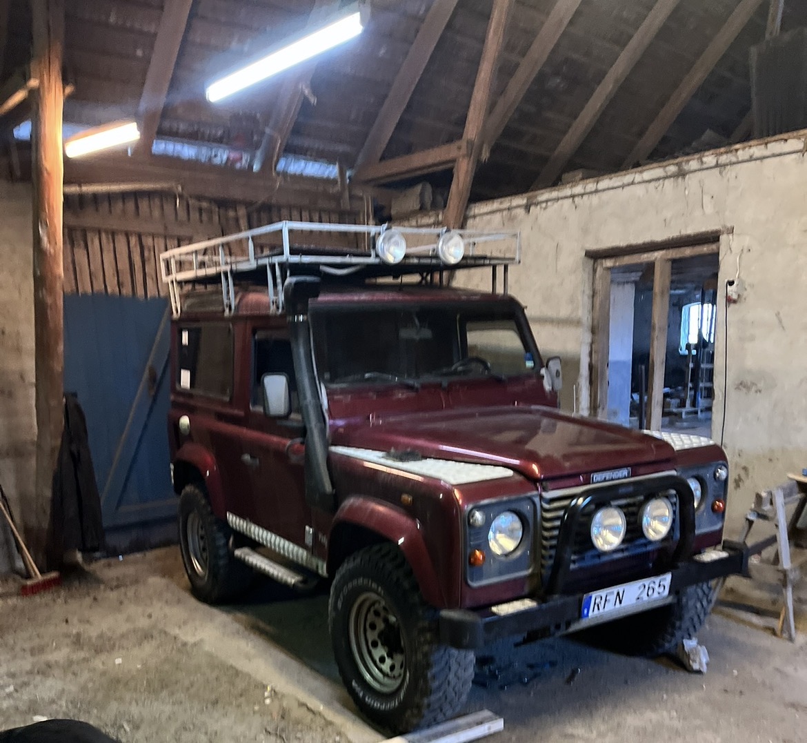 Har ett takräcke i bra skick enligt bild till en Defender 90. Stege baktill samt Extraljus fram och bak monterat på takräcket. Kom med prisförslag alternativt byter jag gärna mot fälgar inkl hjul som passar defender 90.
